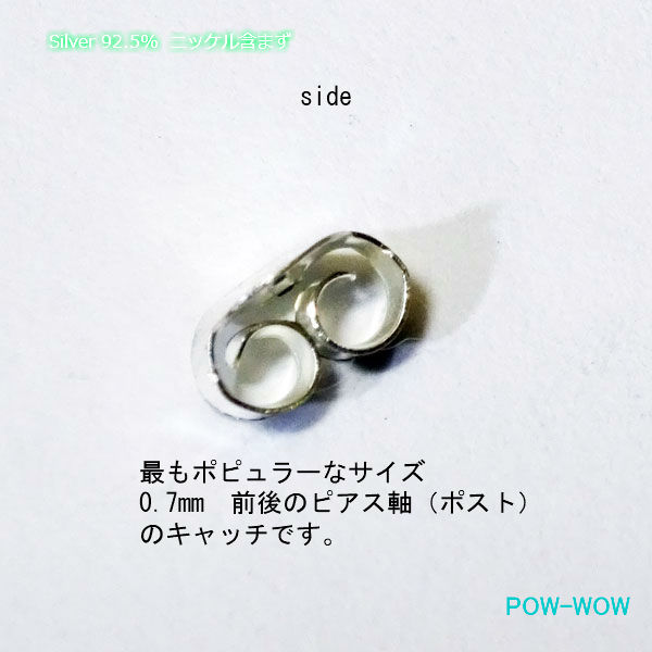 Silver 92.5% ニッケル含まず ピアスの軸は約7mm前後に適応するキャッチです。