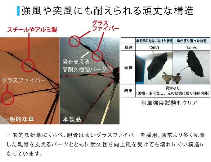 mabu 高強度折りたたみ傘ストレングスミニカモフラージュ柄■商品詳細風速15m/sクリアの耐久性、人気シリーズにカモフラ柄が登場!高強度折りたたみ傘ストレングスミニ「これまでにない耐久性」太めのグラスファイバー製骨と高耐久性樹脂パーツを採用し、一般的な折りたたみ傘に比べ、強風や突風に耐える壊れにくい構造を実現。