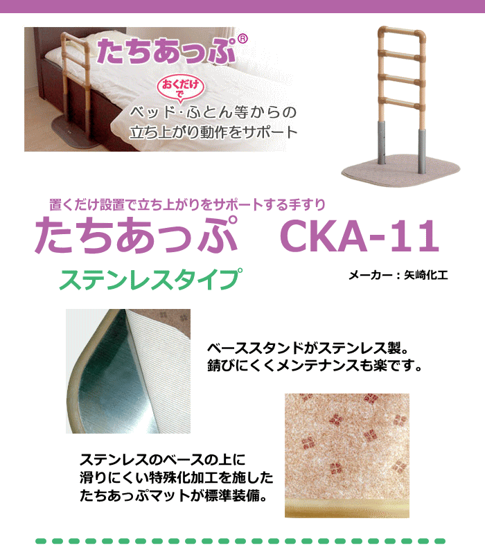 立ち上がり補助手すり「たちあっぷ(ステンレス版)CKA−11」 矢崎化工 【送料無料】 ベッド安定 起き上がり 補助 サポート